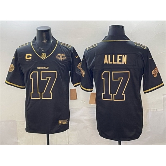 - Men Buffalo Bills 17 Josh Allen Black Gold With 4 Star C Patch Limited Stitched Jersey