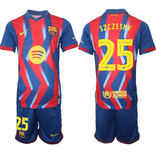 - Men Barcelona Custom Blue Red 2024 25 Home Soccer Jersey Suit