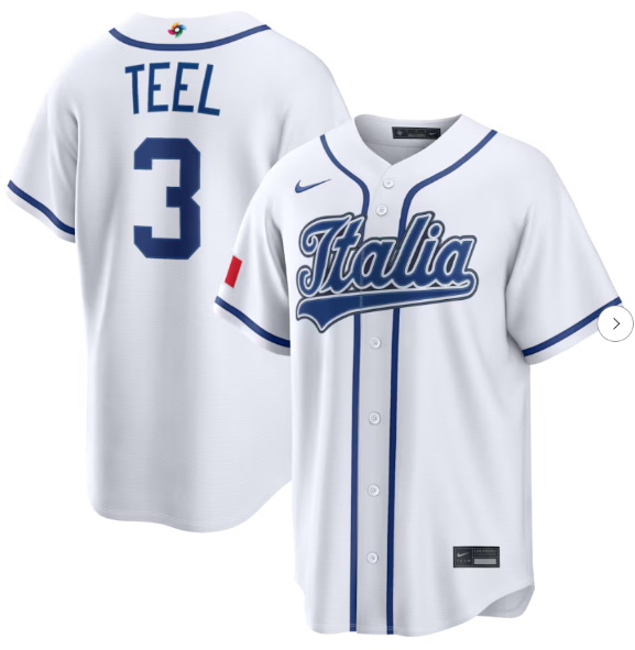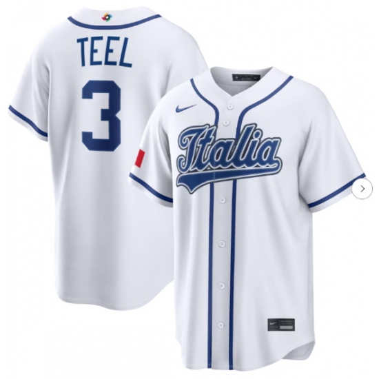 - Men Italy Baseball Kyle Teel #3 2026 World Baseball Classic Home Stadium Stitched Jersey