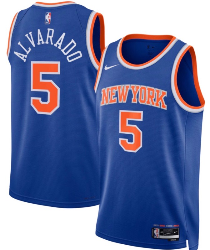 - Men New Yok Knicks 5 Precious Achiuwa Blue 2023 24 City Edition Stitched Basketball Jersey