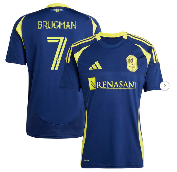 - Mens Nashville SC Gastón Brugman adidas Yellow 2024 The 615 Kit Replica Player Jersey