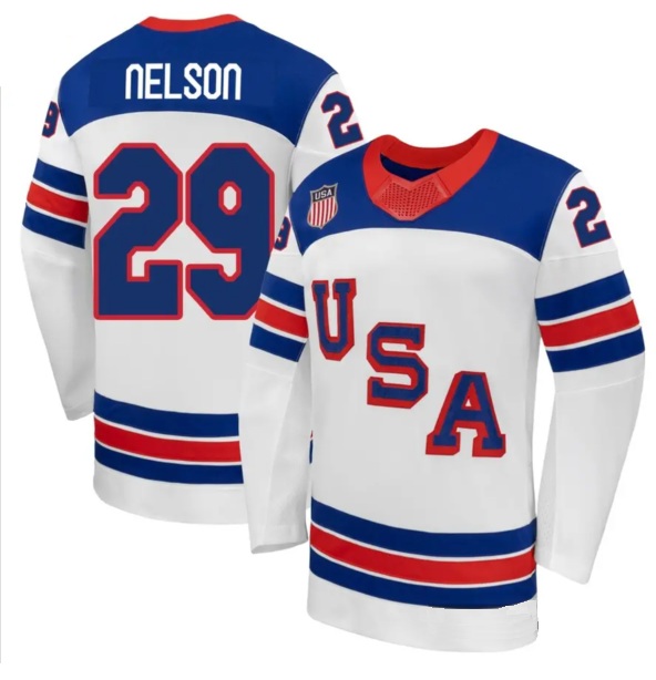 - Men's USA #86 Jack Hughes White 2026 Stitched Hockey Olympic Jersey