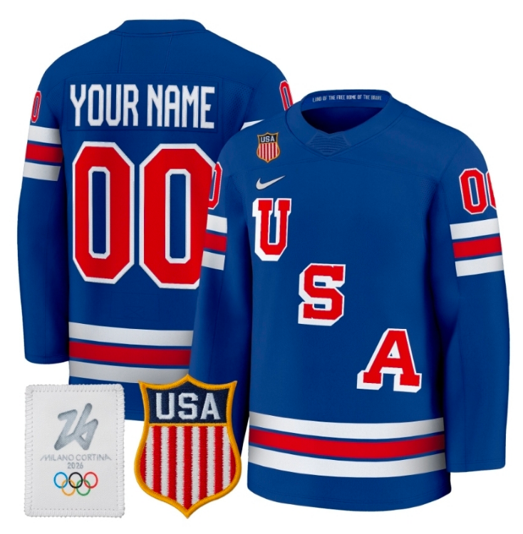 - Men's USA #86 Jack Hughes Blue 2026 Stitched Jersey