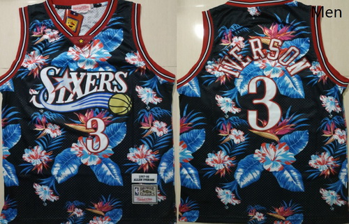 - Philadelphia 76ers 3 Allen Iverson Black 2000 01 Hardwood Classics Flames Swingman Jersey