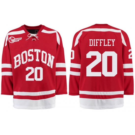 - Boston University Terriers BU 20 Brien Diffley Red Stitched Hockey Jersey
