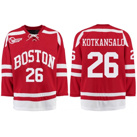 - Boston University Terriers BU 26 Kasper Kotkansalo Red Stitched Hockey Jersey