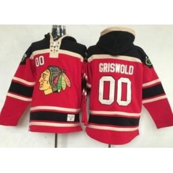 - Men Chicago Blackhawks 00 Clark Griswold Red Pullover Hoodie Stitched NHL Jersey