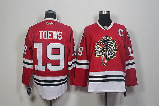 - Blackhawks 19 Jonathan Toews Red Reflective Edition Reebok Jersey