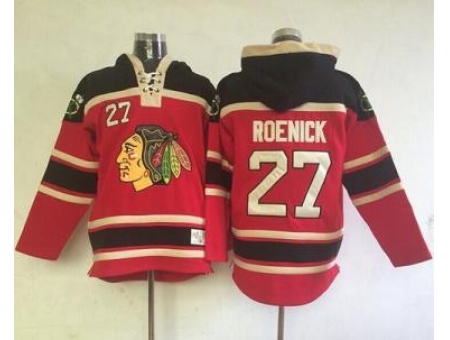 - Men Chicago Blackhawks 27 Jeremy Roenick Cream Heavyweight Pullover Hoodie Stitched NHL Jersey