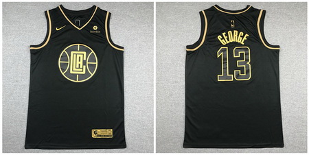 - Clippers 13 Paul George Black Gold Nike Swingman Jersey