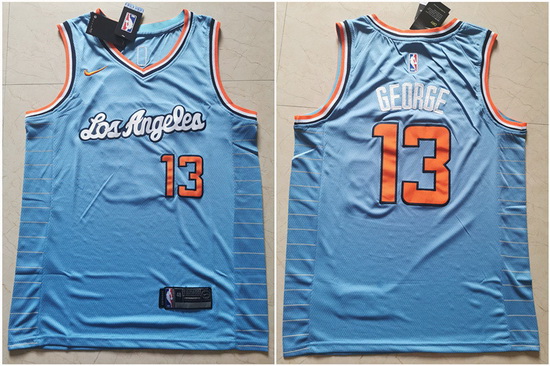 - Mens Los Angeles Clippers 13 Paul George Authentic Blue Basketball Jersey City Edition