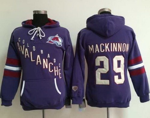 - Colorado Avalanche 29 Nathan MacKinnon Purple Women Old Time Heidi NHL Hoodie