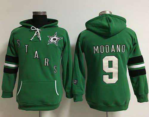 - Men Dallas Stars 9 Mike Modano Black Green Lace Up Pullover Hoodie