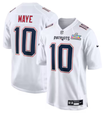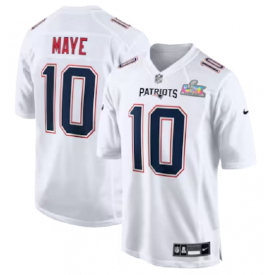 Home>NFL>2025 2026 Super Bowl LX>New England Patriots>Drake Maye New England Patriots Nike Super Bowl LX Patch Tundra Fashion Game Jersey White