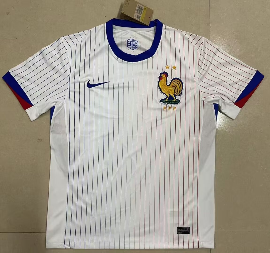 - Men France Custom White 2024 25 Away Soccer Jersey Suit