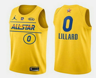 - Men 2021 All Star 0 Damian Lillard Yellow Western Conference Stitched NBA Jersey