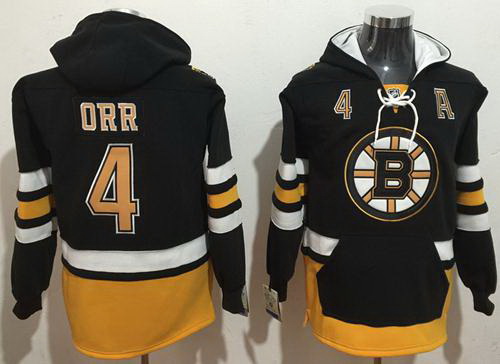 - Bruins #4 Bobby Orr Black Sawyer Hooded Sweatshirt Stitched NHL Jersey