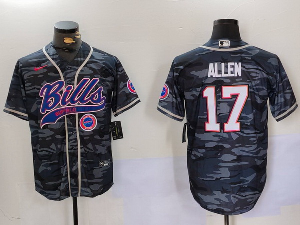 - Men Buffalo Bills Grey Team Big logo Cool Base Stitched Baseball Jersey