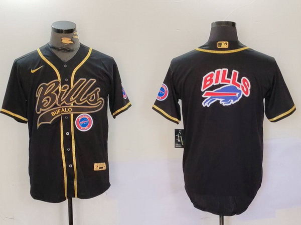 - Men Buffalo Bills big logo Black Cool Base Stitched Baseball Jersey