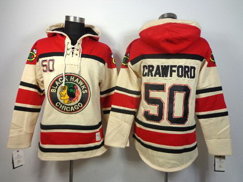 - Men Chicago Blackhawks 50 Corey Crawford Cream Heavyweight Pullover Hoodie Stitched NHL Jersey