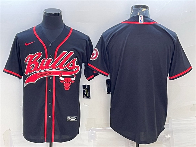 - Men Chicago Bulls Blank Black Cool Base Stitched Baseball Jersey