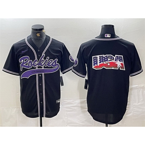 - Men Colorado Rockies Black Team Big Logo Cool Base Stitched Baseball JerseyS