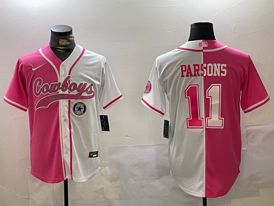 - Men Dallas Cowboys 88 CeeDee Lamb Pink White Split Cool Base Stitched Baseball Jersey