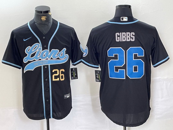 - Men Detroit Lions Team Big Logo Grey Cool Base Stitched Baseball Jersey 1