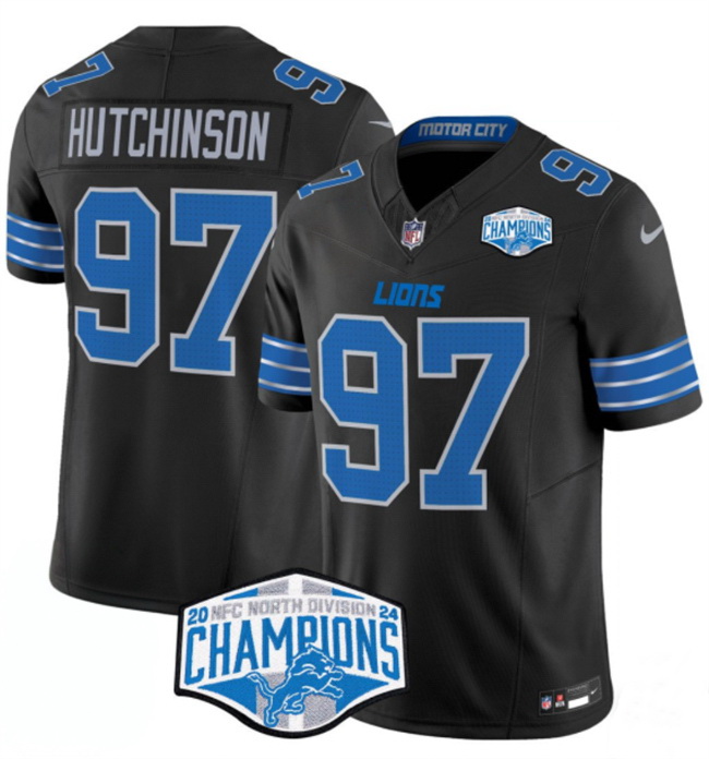 - Men Detroit Lions Team Big Logo Black Cool Base Stitched Baseball Jersey 1