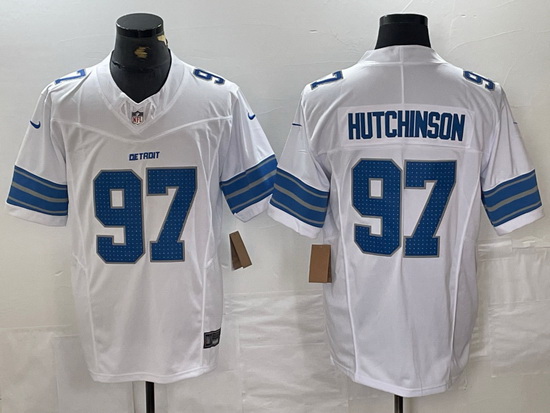 - Men Detroit Lions 12 Tim Patrick White 2025 F U S E Vapor Limited Stitched Jersey