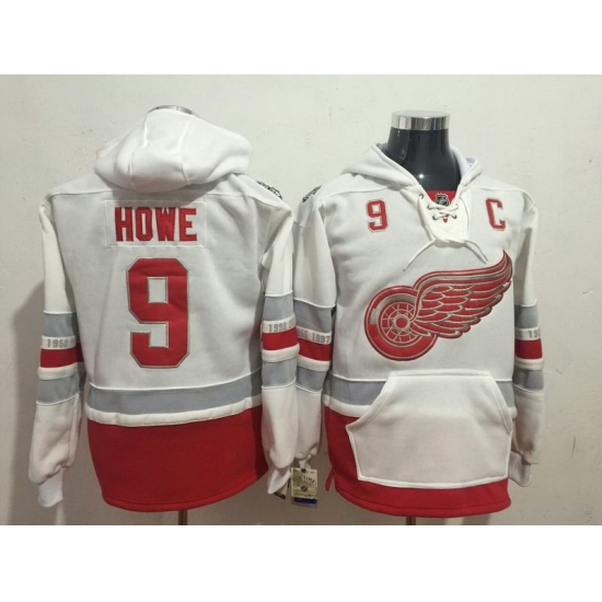 - Men Detroit Red Wings 9 Gordie Howe Red Sawyer Hooded Sweatshirt Stitched NHL Jersey