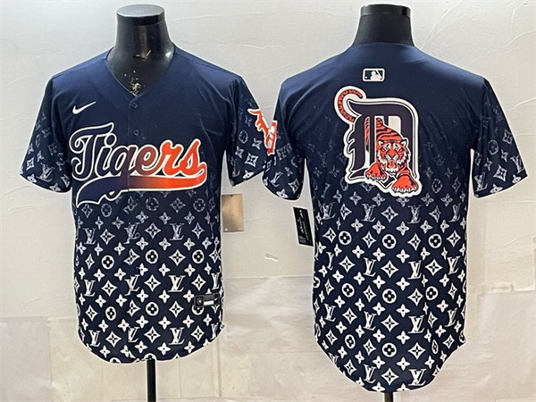 - Men Detroit Tigers Team Big Logo 2024 Navy City Connect Cool Base Limited Stitched Jerseys 4