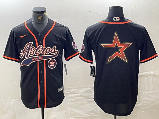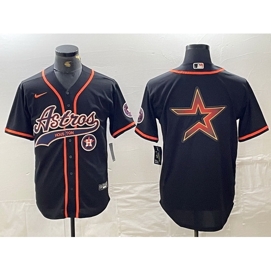 - Men Houston Astros Black Team Big Logo With Patch Cool Base Stitched Baseball Jersey 6