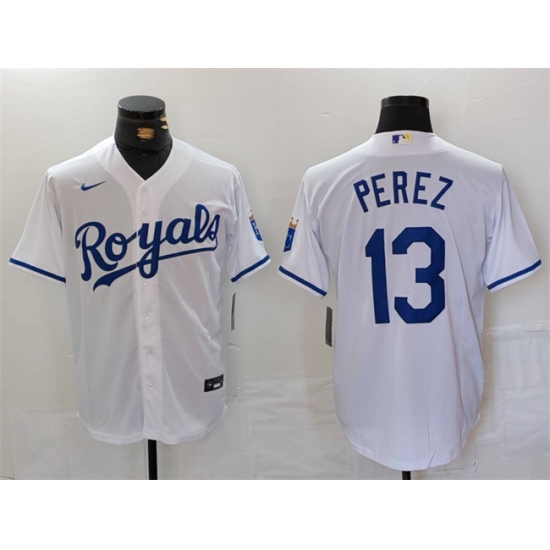 - Men Kansas City Royals 13 Salvador Perez Light Blue Cool Base Stitched Jersey 2