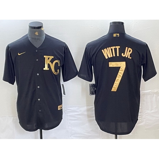 - Men Kansas City Royals 7 Bobby Witt Jr Black Cool Base Stitched Jersey