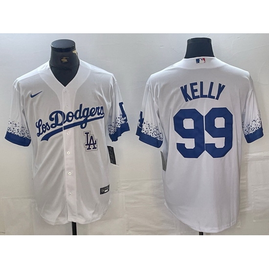 - Men Los Angeles Dodgers Blue Team Big Logo City Connect Cool Base Stitched Baseball Jersey 2