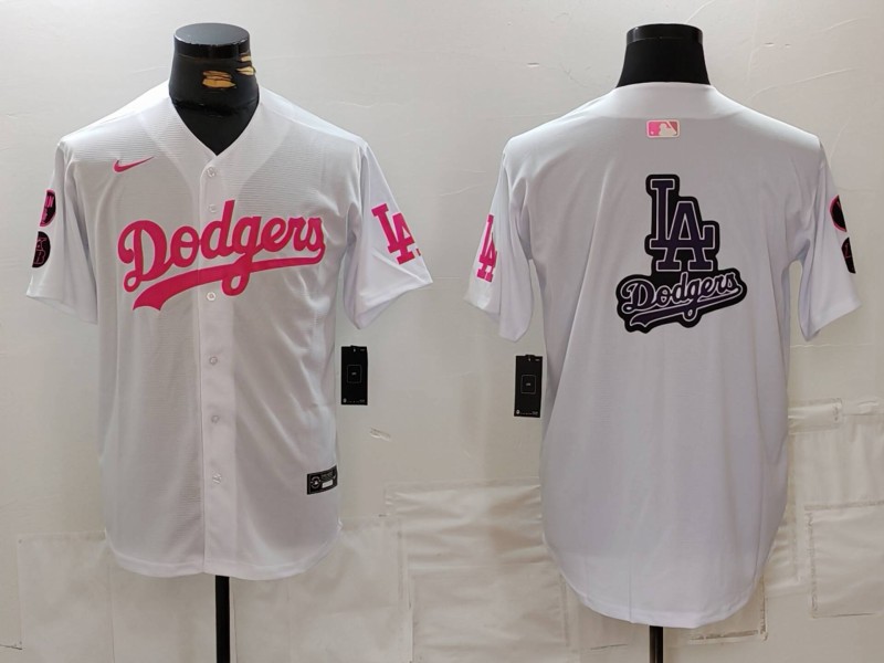 - Men Los Angeles Dodgers Blank White Pink Vin 26 Kobe Patch Stitched Baseball Jersey