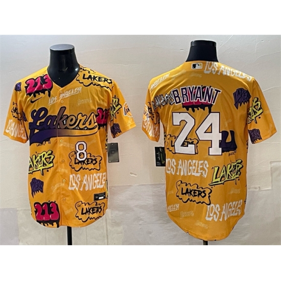 - Men Los Angeles Lakers 8 Kobe Bryant Gold Purple Split Stitched Baseball Jersey 4