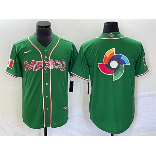 - Men Mexico Baseball Blank 2023 Green World Baseball Classic Stitched Jersey 2