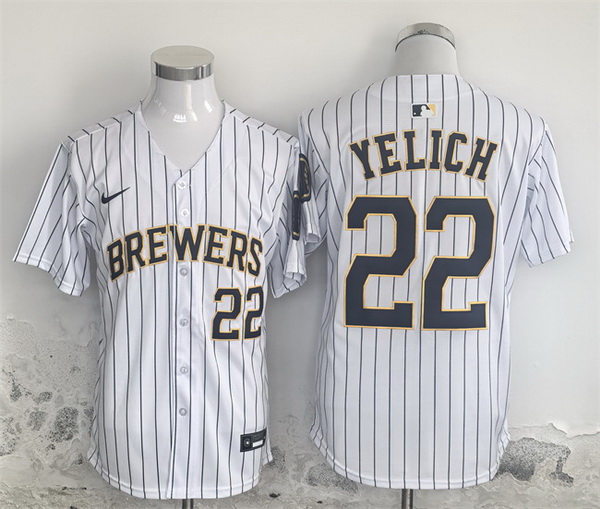 - Men Milwaukee Brewers Yellow Team Big Logo Cool Base Stitched Jersey