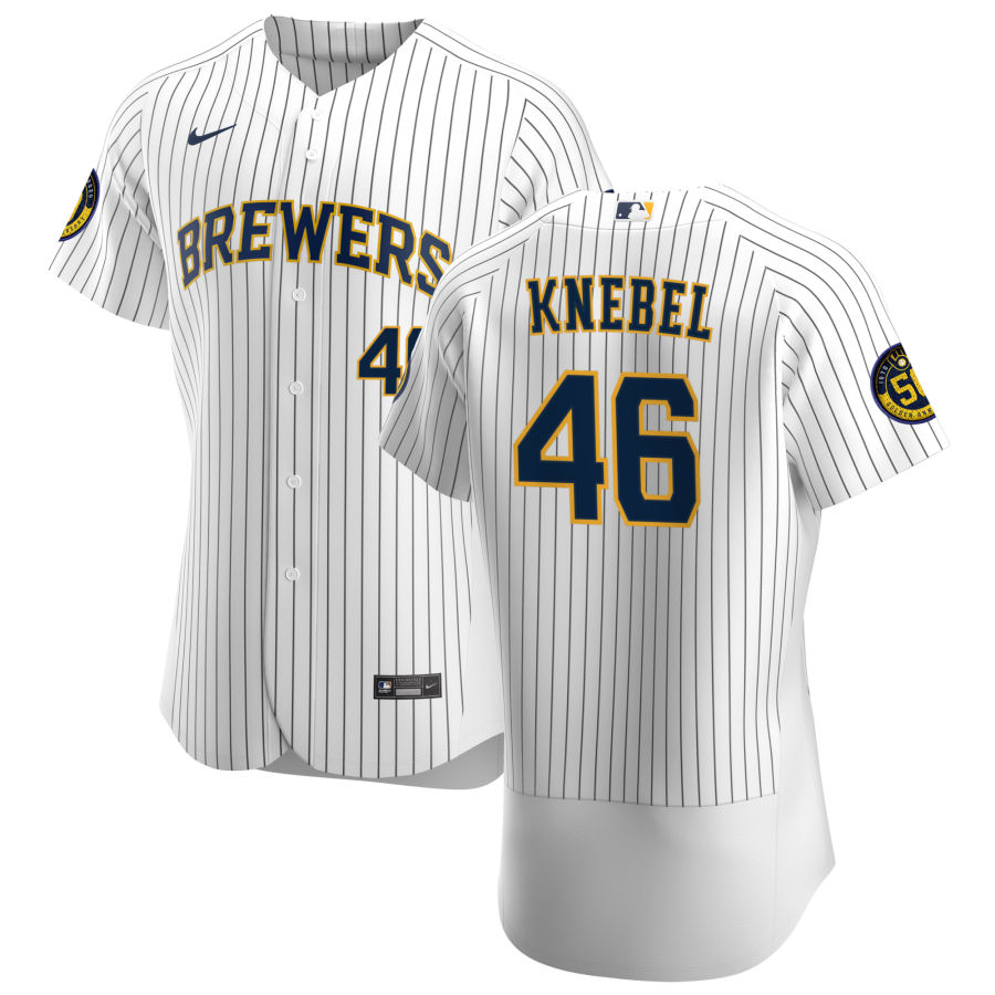 - Mens Majestic Milwaukee Brewers 46 Corey Knebel Replica Grey Road Cool Base MLB Jersey