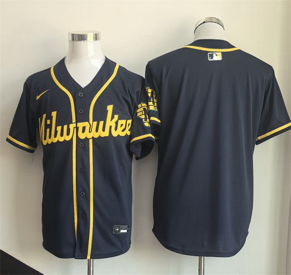 - Men Milwaukee Brewers 7 Victor Caratini Navy Cool Base Stitched Jersey