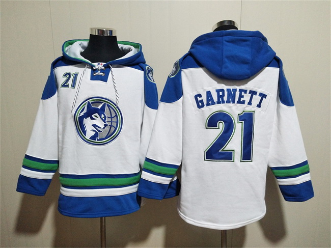 - Men Minnesota Timberwolves Blank White Lace Up Pullover Hoodie
