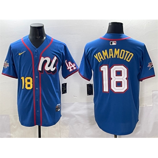 Home>MLB>MLB 2025 All Star>Men Jerseys>Men National League 18 Yoshinobu Yamamoto Blue 2025 All Star Edition Limited Stitched Baseball Jersey