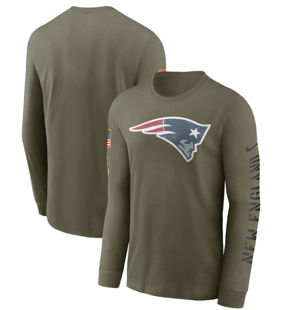 - Men New England Patriots Olive 2022 Salute To Service Long Sleeve T Shirt
