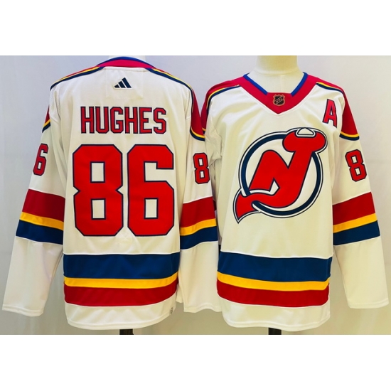 - Men New Jersey Devils 86 Jack Hughes Red 2024 25 With A Patch Stitched Hockey Jersey