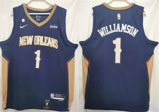 - Men New Orleans Pelicans 5 Dejounte Murray Navy Icon Edition Stitched Basketball Jersey