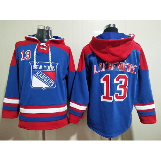 Home>Hoodie T Shirt>NHL Hoodies>New York Rangers>Men New York Rangers Alexis Lafrenière 13 Blue Stitched NHL Hoodie