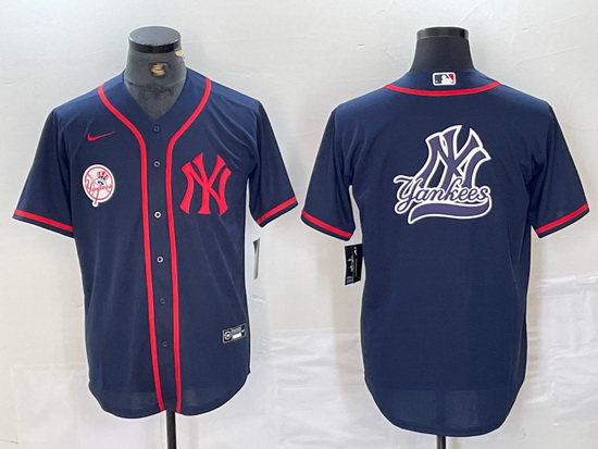 - Men New York Yankees Navy Team Big Logo Cool Base Stitched Baseball Jersey 9