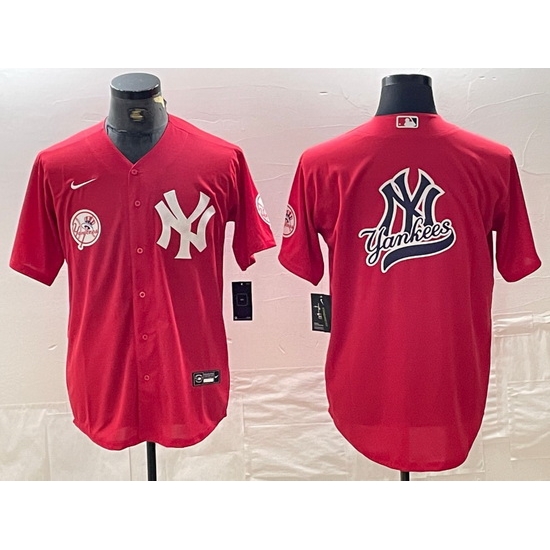 - Men New York Yankees Navy Team Big Logo Cool Base Stitched Baseball Jersey 1